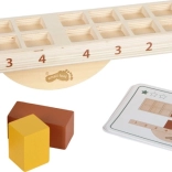 Ez a minőségi, FSC tanúsított fából készült Montessori egyensúlyozó játék megismerteti a gyerekeket az egyensúly, súly és emelő alapelveivel. A gyerekek színes blokkokat helyeznek el a számozott pozíciókon, és figyelik, hogyan változik az egyensúly. Készíthetnek saját építményeket, vagy követhetik a különböző nehézségű kártyák feladatait.