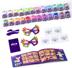 - 24× gyurmacsomag (10 g), képes útmutató, modellező eszközök, 5× visszazárható tasak, 2× papír szemüveg