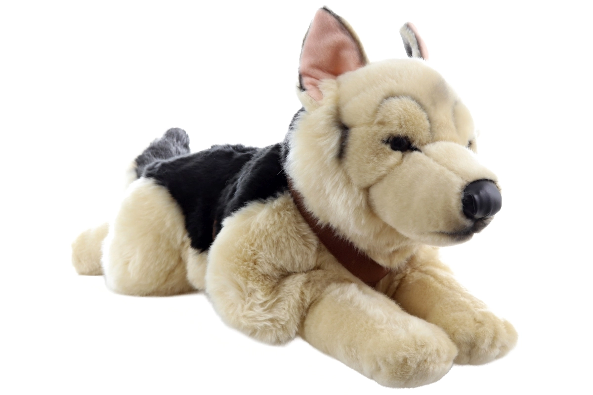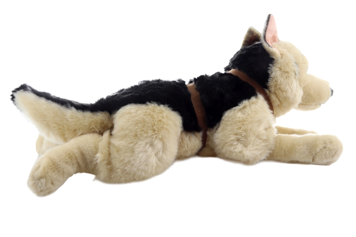 Ez az elegáns, hámmal ellátott plüss német juhászkutya remek társ a mindennapi játékhoz és ölelgetéshez. Valósághű kivitele telt bézs-fekete bundával és karakteres fülekkel élethű hatást kelt, amely a gyerekeket és a felnőtteket egyaránt lenyűgözi. Kellemesen puha felülete jól kézbe simul, megnyugvást nyújt, és dekoratív kiegészítője a gyerekszobának.