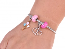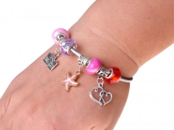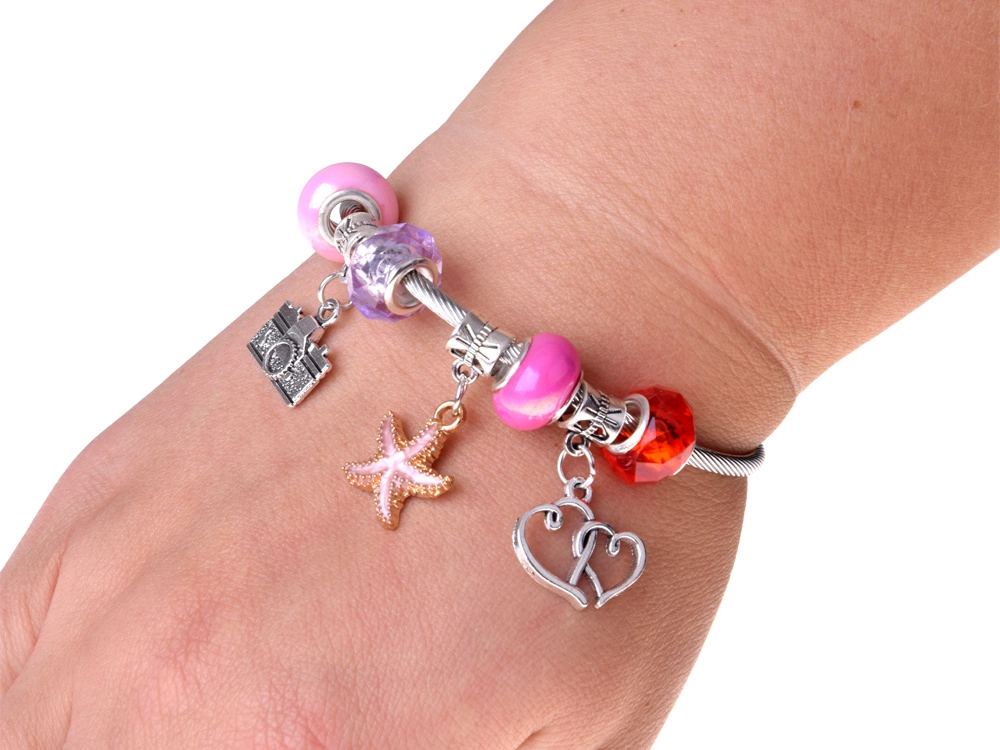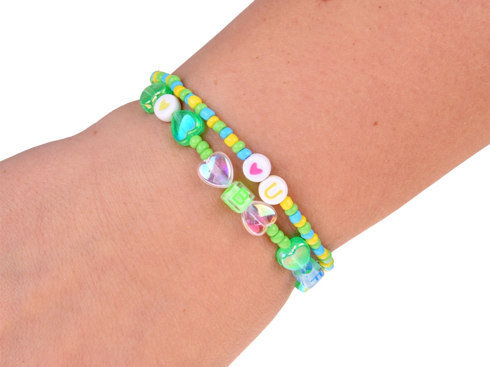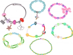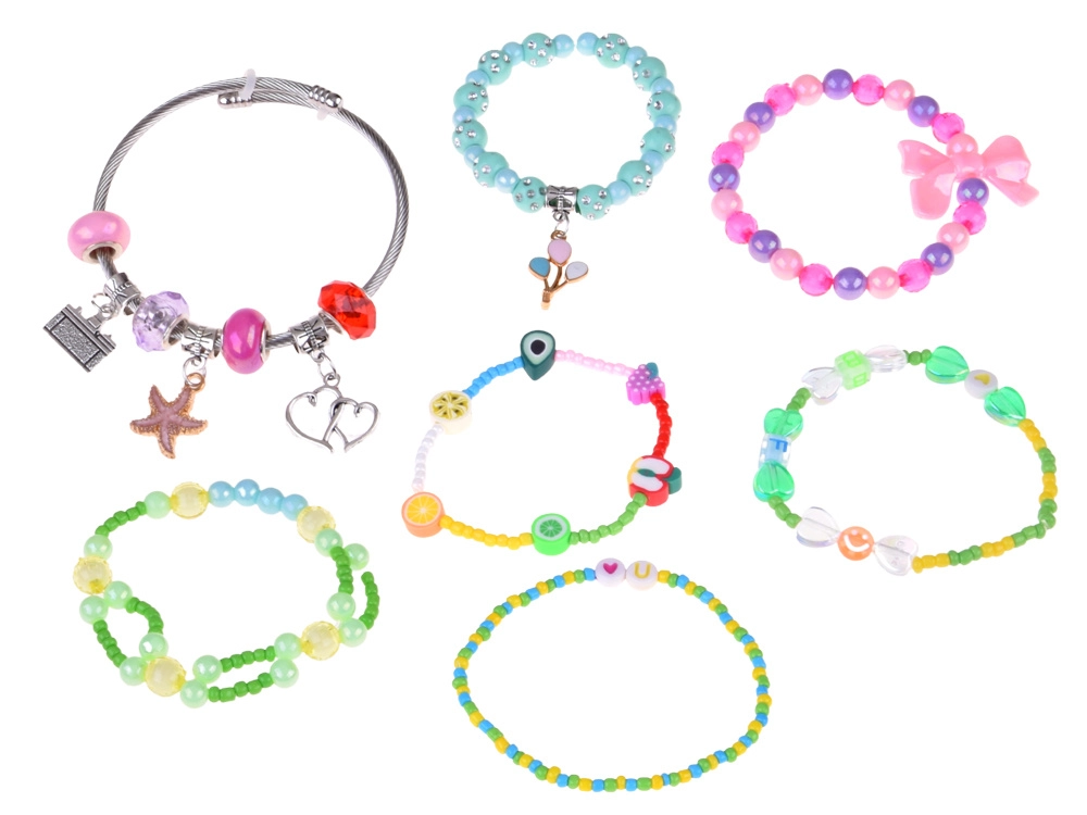 Színes gyöngyök, charmok és medálok segítségével egyedi karkötők és nyakláncok tervezhetők. A rugalmas zsinór és a csipesz a kisebb gyerekek számára is megkönnyíti a fűzést.