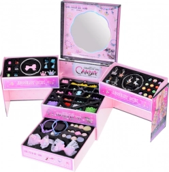 Varázslatos, kihajtható ékszerdoboz gyöngyökkel, medálokkal és hajdíszekkel, amelyből minden kis parádés kislány a saját szépségének alkotója lehet. A három szintes tároló, a beépített tükör és a gazdag tartalom segítségével egyedi karkötők, nyakláncok és frizurák készíthetők. A gazdag tartalom, a praktikus rendszerezés és a kreativitás és finommotorika támogatása teszi a szettet ideális ajándékká a mindennapi szórakozáshoz.