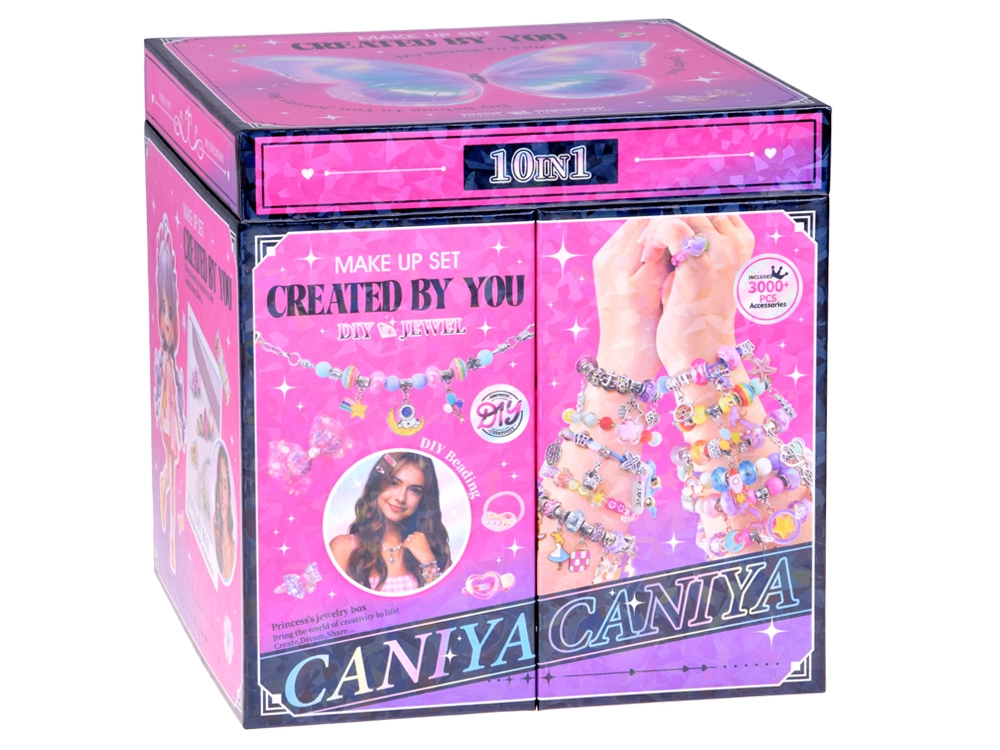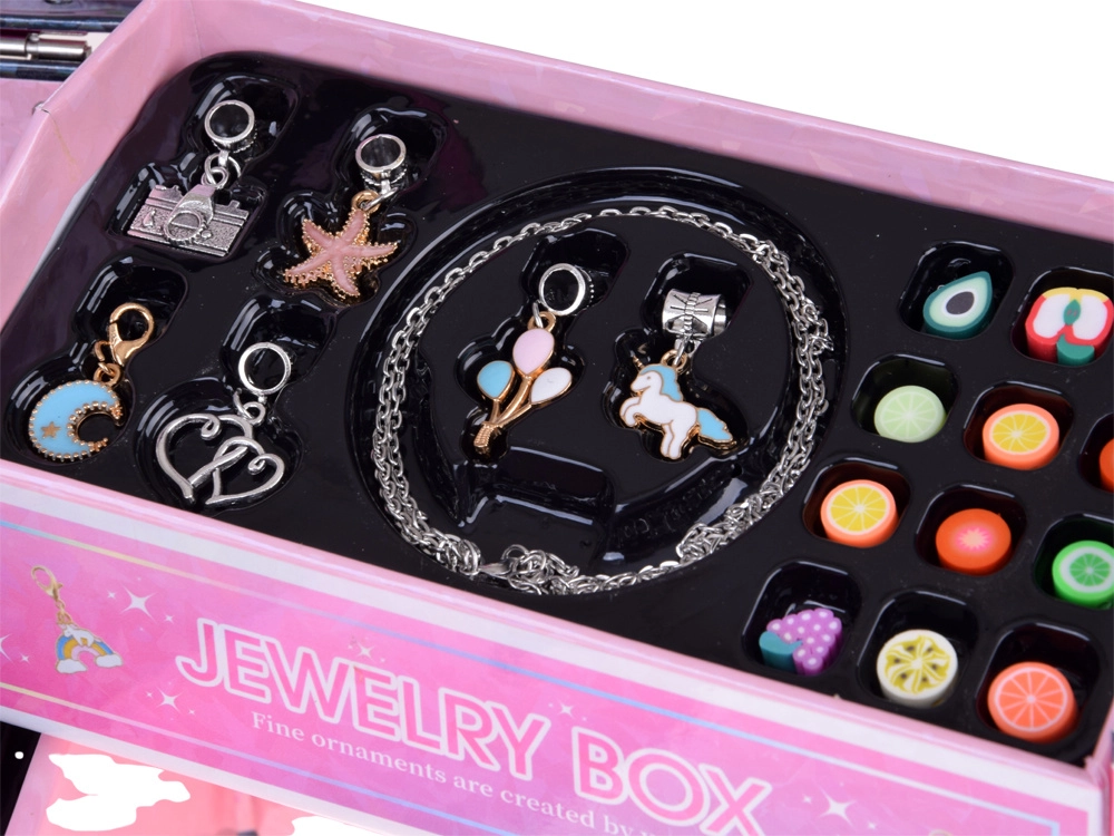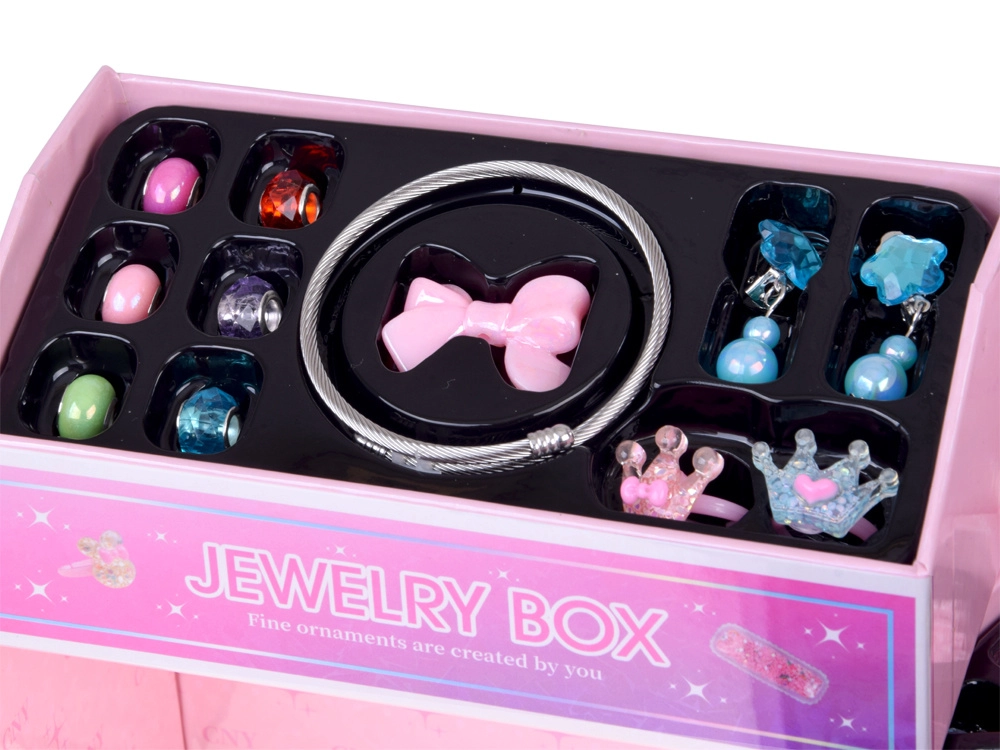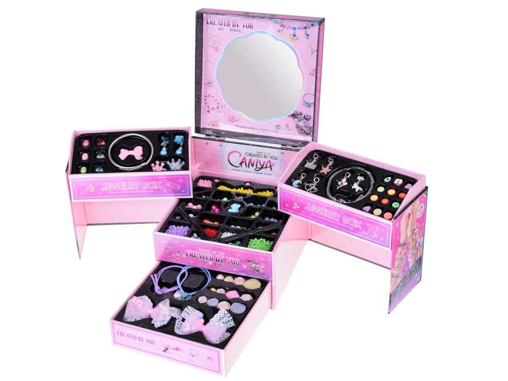 - Gyerekeknek szánt, kihajtható ékszerdoboz DIY gyöngyökkel és hajkiegészítőkkel