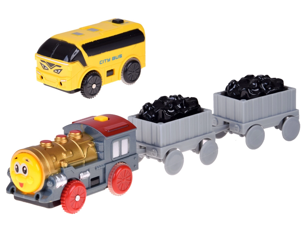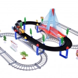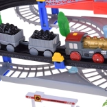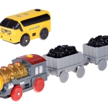 A gőzmozdony szénszállító vagonokat húz, motorhangokat ad ki és vidám dallamokat játszik. A gyerekek élvezhetik az autentikus utazást a többszintű pályán.