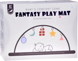 - Szőnyeg, 2 ív, felakasztható játékok készlete: tükör, kontrasztkártyák, rágókák (csillagok), puha kontrasztlabda, csörgő, zizegő elemek