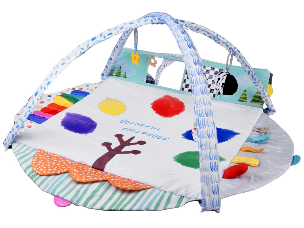 A két rugalmas ív a játékok felakasztására szolgál; eltávolításuk után nagy, kényelmes felület marad hason töltött időhöz és szabad játékhoz.