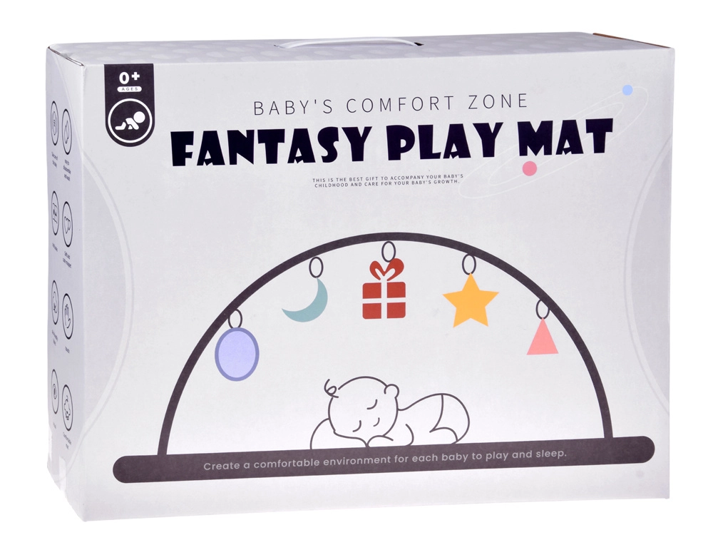 Tágas és szuper puha 2 az 1-ben játszószőnyeg két ívvel, amely biztonságos helyet nyújt a babának fekvéshez, játékhoz és hason töltött időhöz. A kontrasztos kártyák, a tükör, a felakasztható játékok és a zizegő elemek fejlesztik a látást, hallást és tapintást, míg a könnyű összeszerelés és a egyszerű tisztítás a szülőknek kedvez.