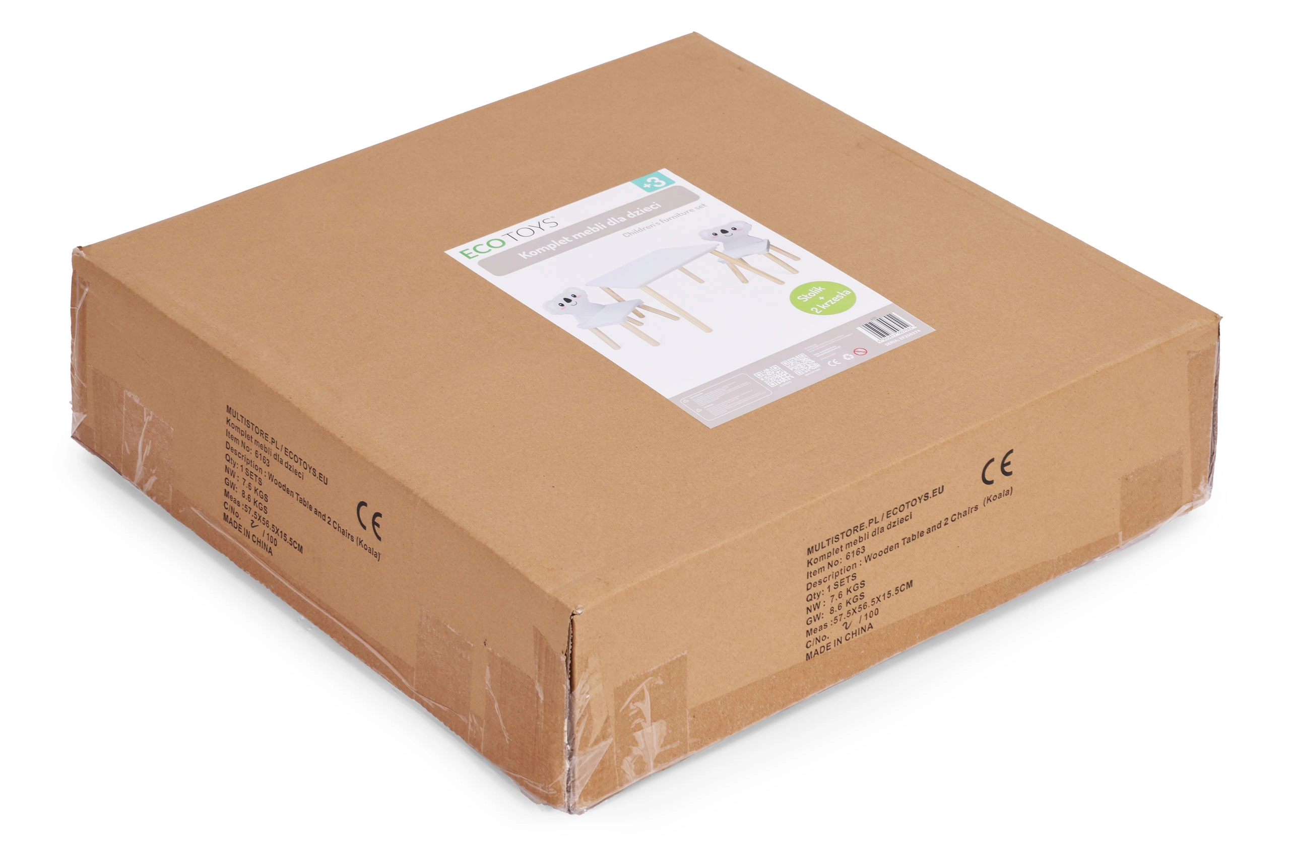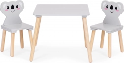 Az ECOTOYS bútorszett a gyerekszobát kreatív játéktérré varázsolja. A széles asztallap bőséges helyet biztosít rajzoláshoz, építőkockákhoz és kézműveskedéshez, és könnyen tisztítható. A két szék koala háttámlákkal játékos megjelenéssel örvendezteti meg a gyerekeket, miközben támogatja a helyes ülést.