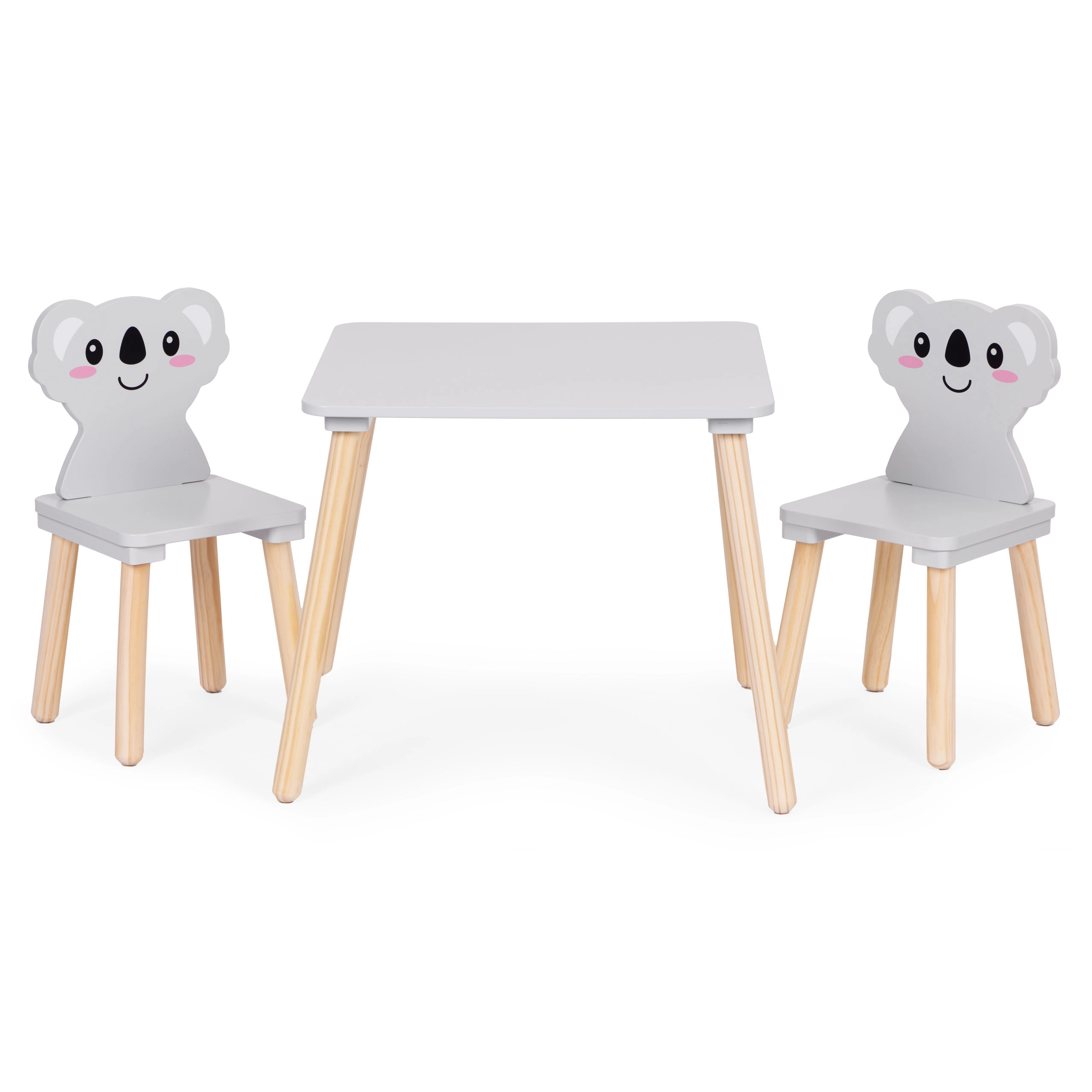 A székek mosolygó koala alakú háttámlái játékos hangulatot adnak a szobának, és motiválják a gyerekeket, hogy több időt töltsenek az asztalkánál.