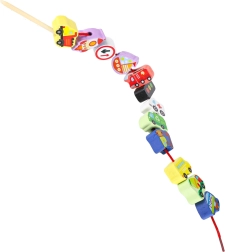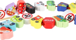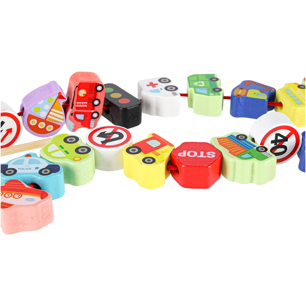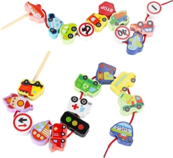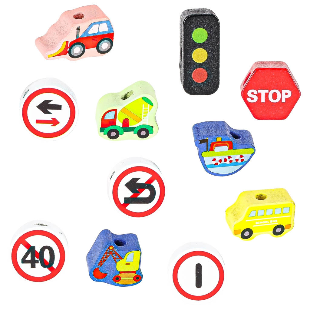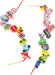 Ez a közlekedési témájú fűzhető készlet segít a gyerekeknek elsajátítani az alapvető közlekedési szabályokat, miközben játékosan fejleszti készségeiket. A változatos formák (autók, buszok, mentő, tűzoltó- vagy teherautó, jelzőlámpák, táblák) alkotásra csábítanak és serkentik a fantáziát. A sima felületű fa kivitelnek köszönhetően a gyöngyök jól kézben tarthatók és könnyen fűzhetők.