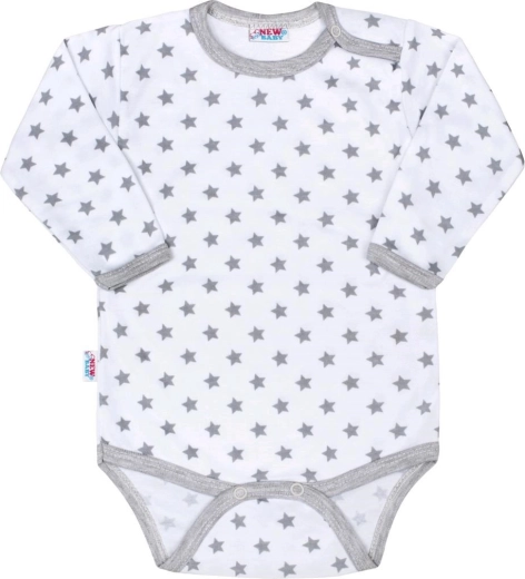 Kényelmes és praktikus baba body mindennapi viselésre. A vállon és a lábak között található patentoknak köszönhetően könnyű fel- és levétel, valamint pelenkázás. 100% pamutból készült, amely puha, légáteresztő és kíméletes az érzékeny bababőrhöz. Stílusos szürke dizájn csillagokkal, kislányoknak és kisfiúknak egyaránt.