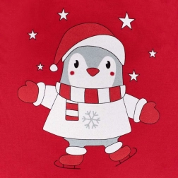 Aranyos baba rugdalózó 100% pamutból, élénk piros színben, pingvin mintával, amely feldob minden téli ruhatárat. A praktikus patentos záródás a vállaknál és a lábak között megkönnyíti az öltöztetést és a pelenkacserét. Az univerzális dizájn kislányoknak és kisfiúknak egyaránt megfelelő, és nagyszerű karácsonyi szettnek is.