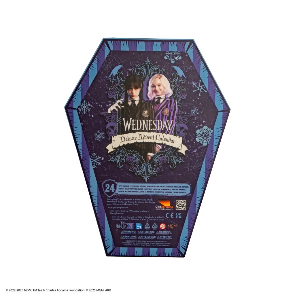 Ez az exkluzív, koporsó alakú adventi naptár minden WEDNESDAY rajongót lenyűgöz. Belül gondosan megtervezett rekeszekben 24 tematikus meglepetés vár, amelyek ötvözik a szórakozást, a praktikusságot és a gyűjtői értéket. Figyelemfelkeltő dizájnjának köszönhetően a naptár dekoratív ajándéknak is ideális az ünnepekre.