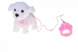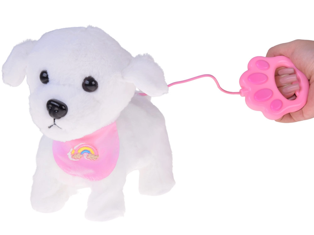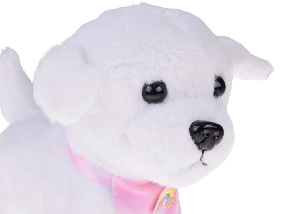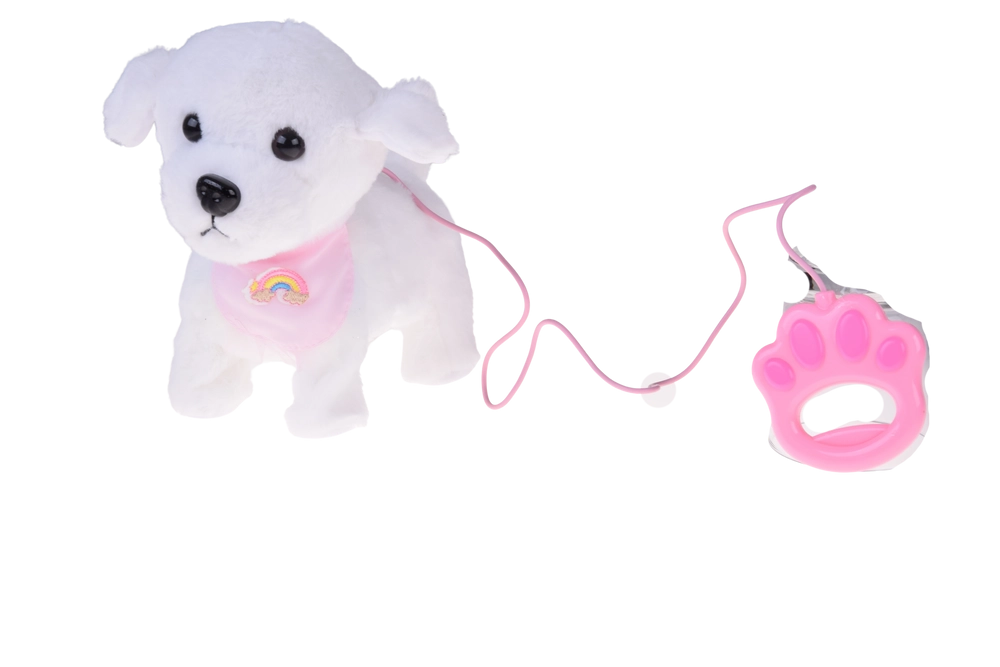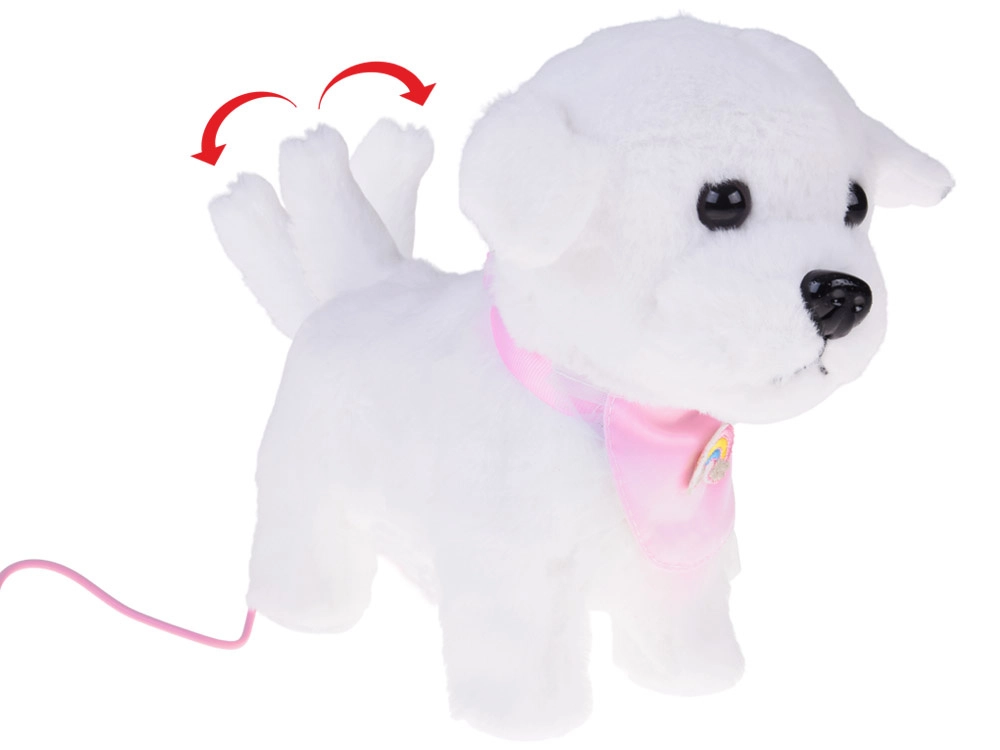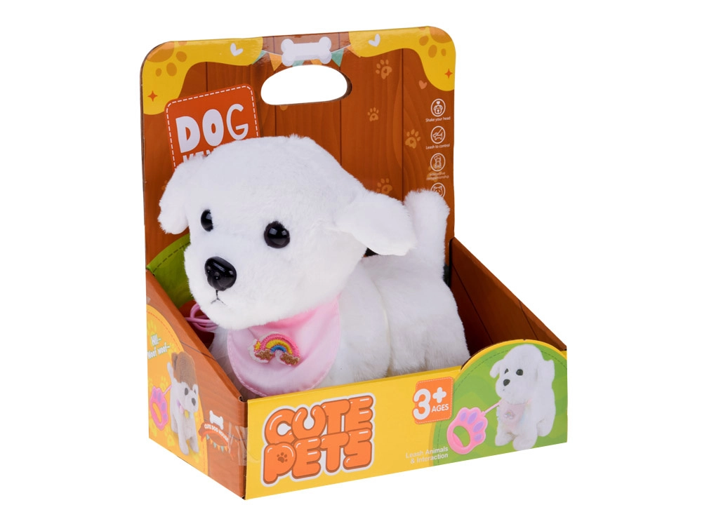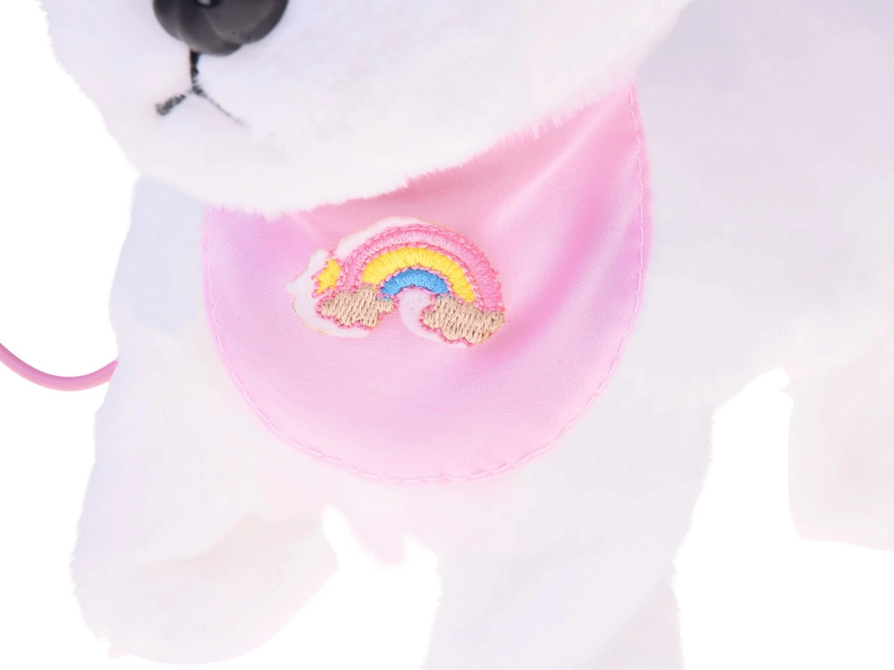A bájos, interaktív plüss kutyus pórázon minden kis állatkedvelőt elragadtat. A pórázon lévő gomb megnyomására sétál, ugat, valósághű hangokat ad ki és csóválja a farkát. Puha, kellemes tapintású anyagból készült, és cuki, szivárványos bandanával díszített – tökéletes társ mindennapos játékhoz és remek ajándék is.