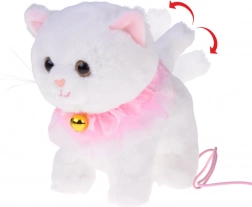 - Pórázon sétál, nyávog, valósághű hangokat ad ki, csóválja a farkát