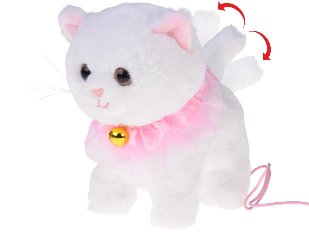 Az interaktív plüss kandúr pórázon remek társ a gyerekeknek, akik saját kis kedvencet szeretnének. Elég bekapcsolni, megfogni a pórázt, és a kiscica vidáman elindul, nyávog és csóválja a farkát. A puha plüss kivitel csillogó szemekkel, kedves orrocskával és apró bajuszszálakkal garantálja, hogy a gyerekek azonnal megszeressék.