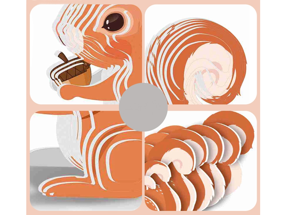 Építs egy aranyos mókust tartós kartonból! Ez a kreatív 3D modell ideális 3 éves kortól, és 35 könnyen összepattintható darabot kínál. Fejleszti a finommotorikát, a türelmet és a térbeli képzelőerőt, a kész figura pedig remekül mutat díszként a gyerekszobában.
