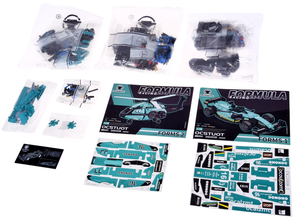 - Formula–1 vagy helikopter (2 az 1-ben, egyszerre nem építhető meg mindkettő)