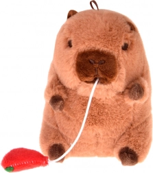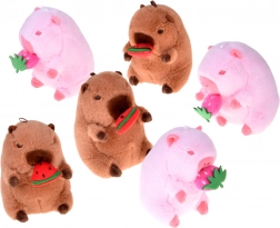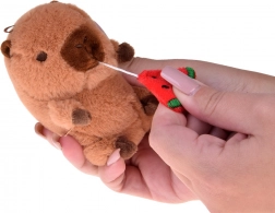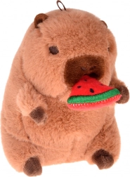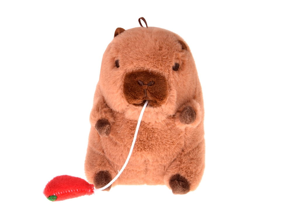 A kisméretű plüss kapibara, mint bájos akasztós kulcstartó, gyerekeknek és felnőtteknek egyaránt örömöt okoz. Puha, kellemes tapintású anyagból készült, hímzett szemekkel és orrocskával a maximális biztonságért, a fején pedig akasztófüllel. A zsinóron lévő dinnye meghúzására a játék finoman rezeg, és a gyümölcs visszatér a szájacskához – így a kapibara úgy néz ki, mintha ízletesen majszolná a lédús dinnyét.