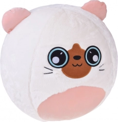 Aranyos plüss labda fehér kiscica formában, kb. 45 cm átmérővel, amely ötvözi a mozgásos szórakozást és a biztonságos játékot. Belül rugalmas gumi a remek pattogáshoz, kívül puha plüss, kellemes tapintással. Ideális 3 éves kortól otthonra, óvodába és a kertbe is.