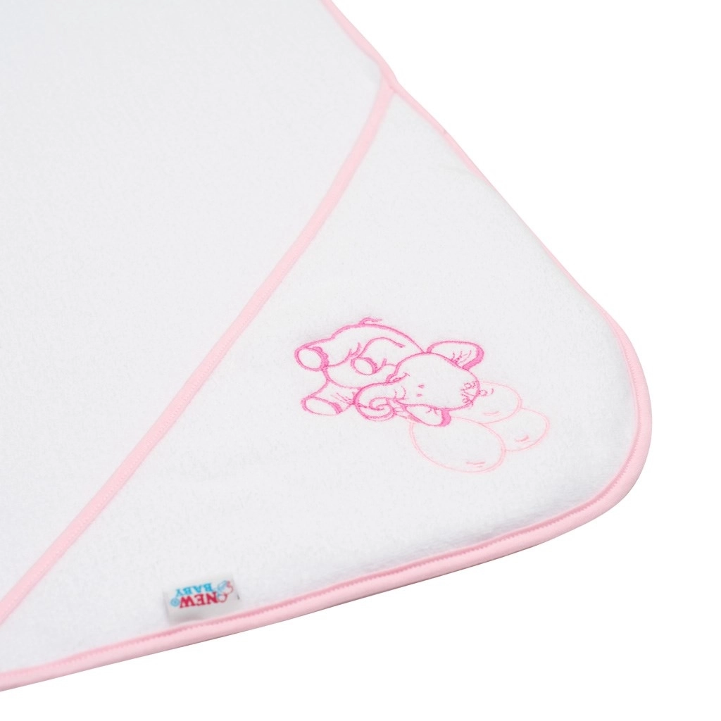 Gyermek frottír kapucnis törölköző elefántos hímzéssel 100×100 cm fehér New Baby