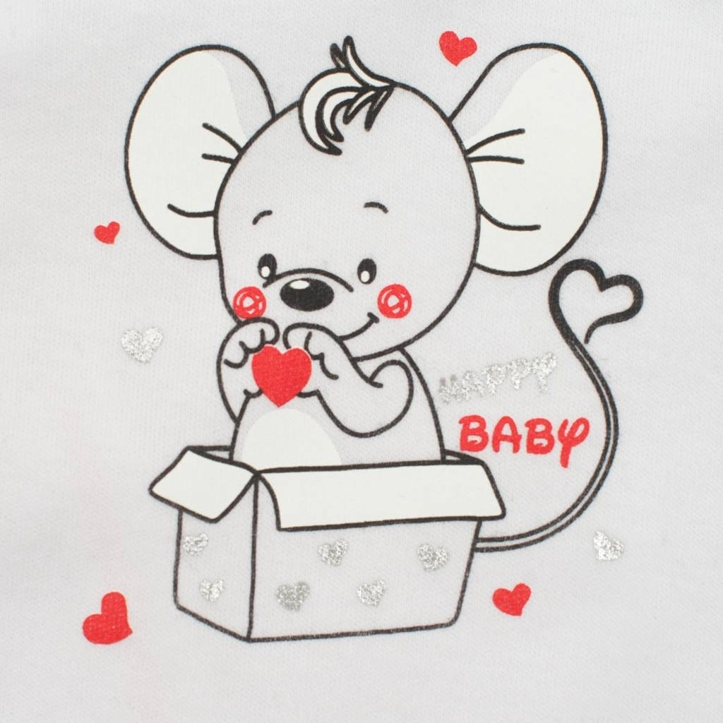 A kényelmes New Baby Mouse baba rugdalózó 100% pamutból készült, és puha, légáteresztő anyagával kíméletes a babák bőréhez. A praktikus patentos zárás a vállon és a lábak között megkönnyíti az öltöztetést és a pelenkacserét. A bájos egérke minta és a kontrasztos szegélyek játékos megjelenést kölcsönöznek a ruhácskának.