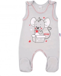 Stílusos újszülött szett NEW BABY Mouse szürke színben, puha 100% pamut anyaggal és mindennapi használatra alkalmas, praktikus megoldásokkal. A szett rugdalózót és kabátkát tartalmaz patentos zárással, amely megkönnyíti az öltöztetést és a pelenkacserét. A bájos egérke motívum és a színes szegélyek kedves megjelenést kölcsönöznek, amit a gyerekek és a szülők is imádni fognak.