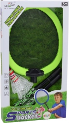 Könnyű és tartós szett szabadidős tollaslabdához, amely 2 ütőt tartalmaz innovatív, lecsavarható nyéllel az egyszerű tároláshoz és szállításhoz, valamint 2 műanyag labdát. Az ütők puha, habszivacs markolattal rendelkeznek a kényelmes fogásért, és fokozott láthatóságot nyújtanak a zöld fejborításnak köszönhetően. Ideális kerti szórakozáshoz, játszótérre vagy nyaralásra. Alkalmas 3 éves kortól, CE tanúsítvánnyal és EN71 szabvánnyal.