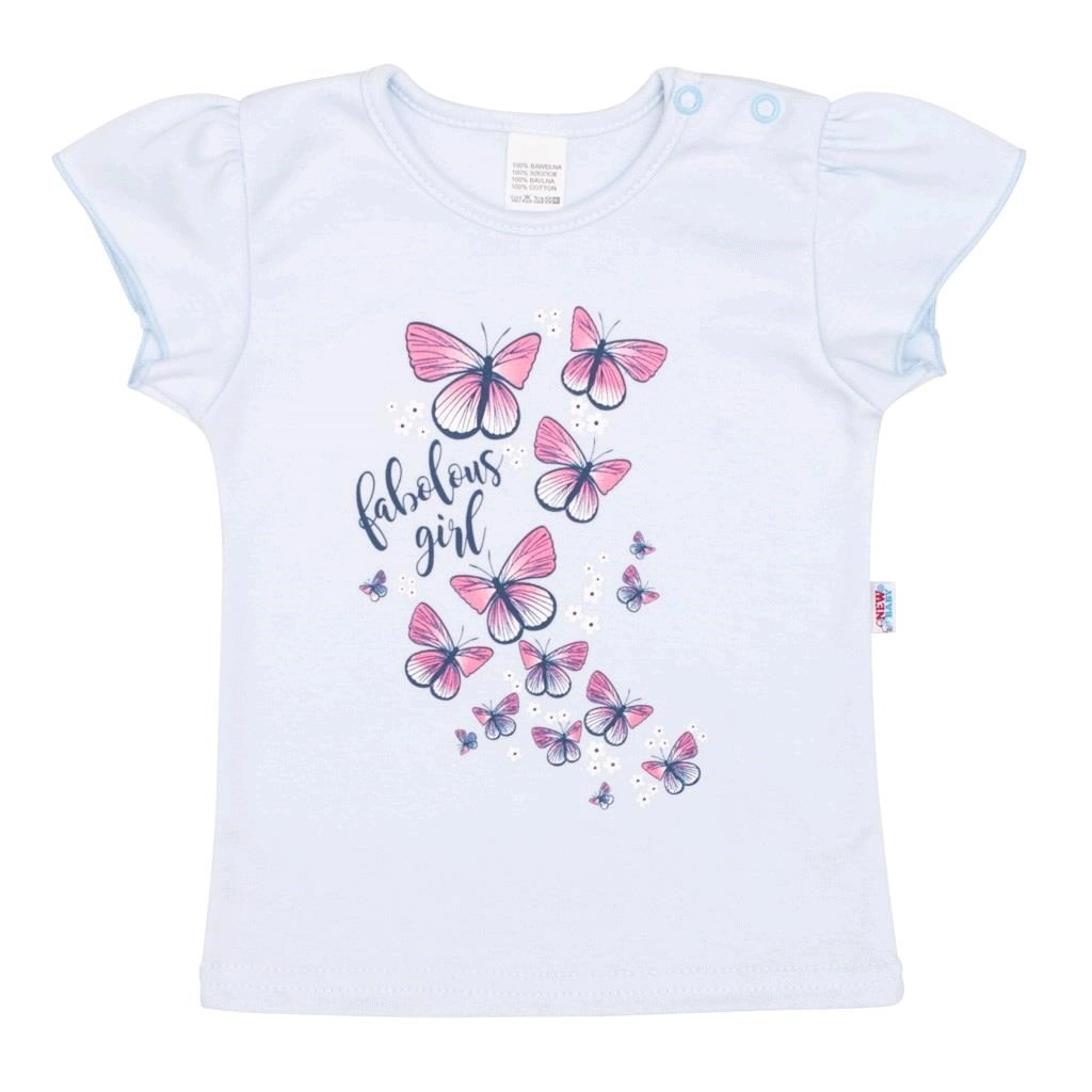 Póló és szoknya finoman összehangolt színekben, pillangó mintával – tökéletes választás hétköznapokra és ünnepi pillanatokra.