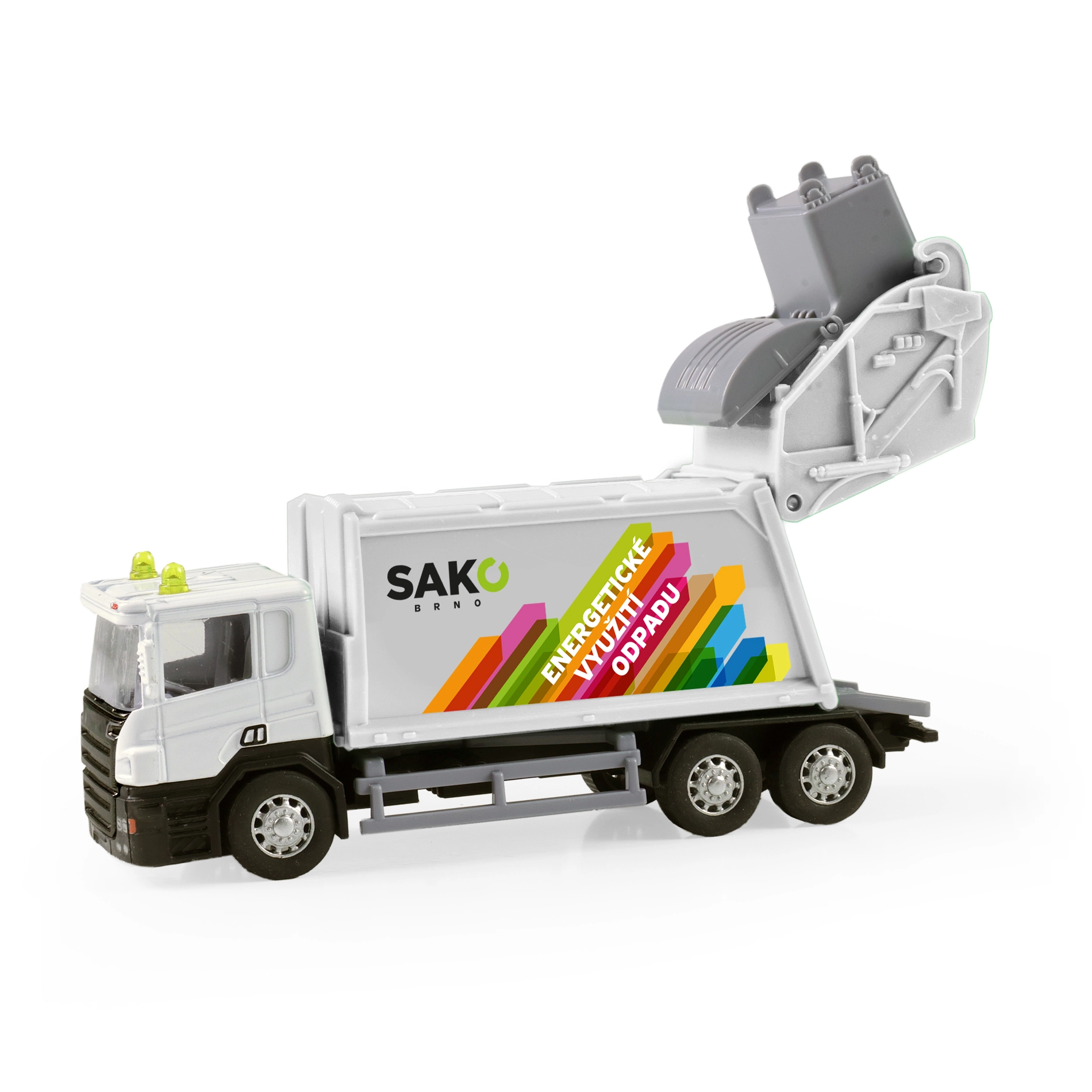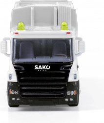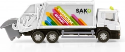 Élvezd a rengeteg szórakozást a részletgazdag szemétszállító autóval SAKO logóval. A fém alváz tartósságot ad a modellnek, míg a felnyitható ajtókkal ellátott műanyag raktér élethű rakodást és ürítést tesz lehetővé. A csomag része egy nyitható kuka is, így a gyerekek utánozhatják a valódi hulladékszállítás működését.