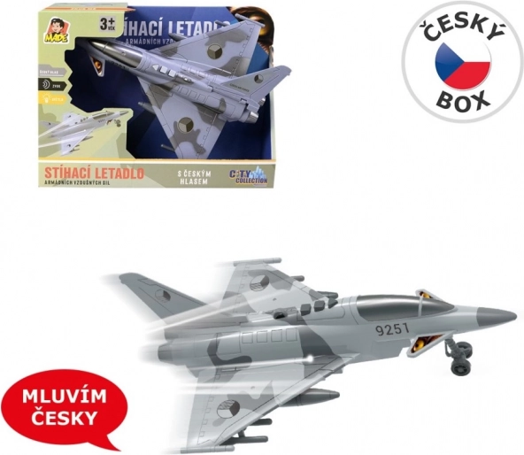 Légy az ég hőse! Ez a cseh felségjelekkel díszített vadászgép valósághű fény- és hangeffekteket, lendkerekes meghajtást és cseh nyelvű hangbemondásokat kínál a toronytól és a pilótától. Ideális ajándék 3 éves kortól kis pilótáknak.