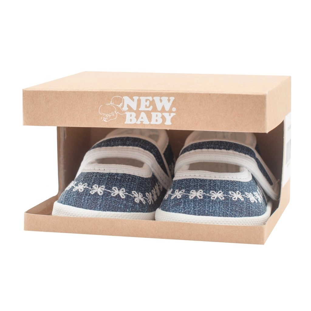 A cipőcskék kellemes pamut–poliészter keverékből készülnek, az alsó részt vékony szintetikus talp alkotja, amely védi a lábat, mégis rugalmas marad. Praktikus EKO dobozban érkezik – újszülötteknek ajándéknak is kiváló.