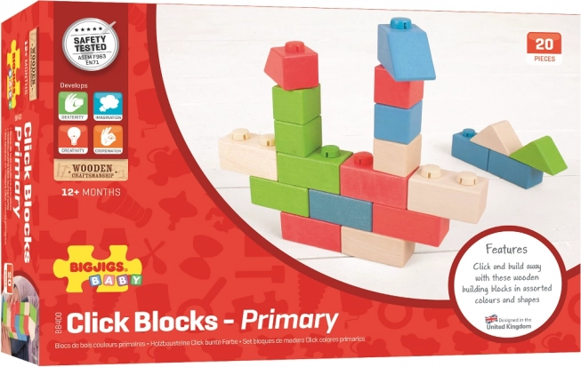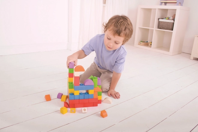 A Bigjigs Baby fa építőkészlet egyedi kombinációt kínál fa kockák és műanyag összekötők segítségével, amelyek lehetővé teszik szilárd és stabil építményeket. A különböző formájú és színes kockák ideálisak kis kezek számára.