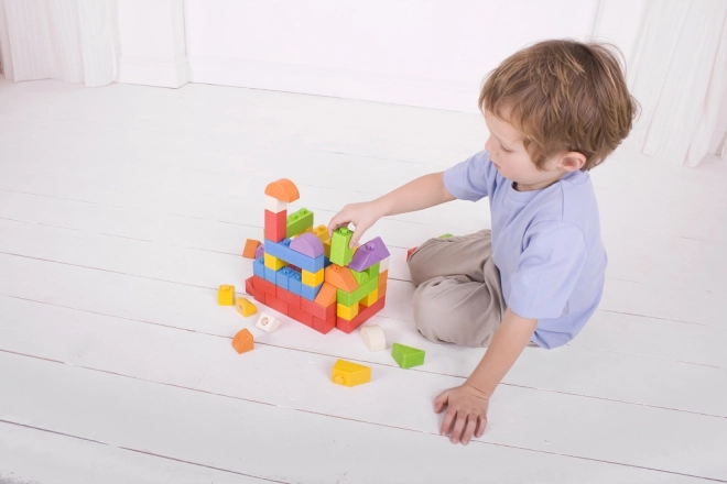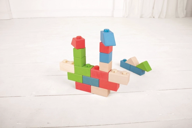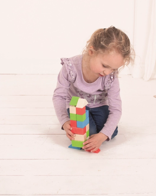 A fa kockák műanyag összekötőkkel lehetővé teszik szilárd és stabil szerkezetek létrehozását.