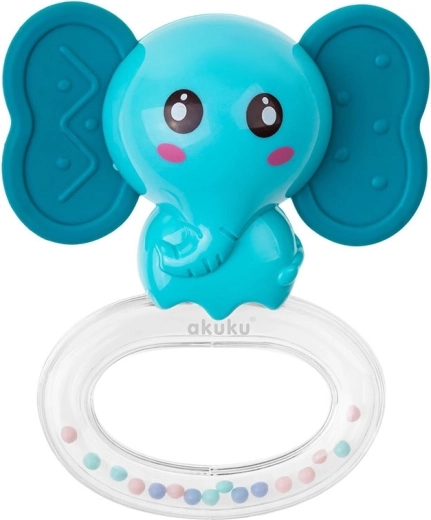 A Akuku márkájú, elefánt alakú, színes csörgős rágóka megkönnyebbülést nyújt a fogzás időszakában, miközben játékosan stimulálja az érzékszerveket. A körülbelül 10 cm-es, kompakt méret ideális a kis kezekbe, a biztonságos kivitel pedig 3 hónapos kortól ajánlott.