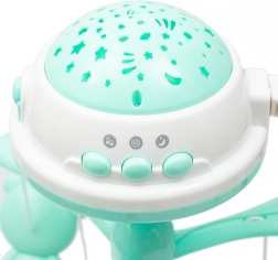A Baby Mix kiságyforgó ideális segítő az elalváshoz és a nappali nyugodt pillanatokhoz. Megnyugtató légkört teremt a csillagos égbolt vetítésével váltakozó színekben, és 3 dallamot és természet hangjait játssza le. Minden funkció külön-külön vezérelhető, így könnyedén beállíthatja a fények, a zene és a forgás kombinációját a baba igényei szerint.