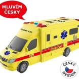 Ez a részletgazdag mentőautó a Csehországban használt Orvosi Mentőszolgálat dizájnjával rengeteg akciót és szórakozást kínál a gyerekeknek. A gomb megnyomására valósághű diszpécser- és személyzeti bemondások indulnak, melyeket működő kékfény és hangeffektek egészítenek ki. A lendkerekes meghajtásnak köszönhetően az autó könnyedén elindul a padlón, folyamatos tologatás nélkül.