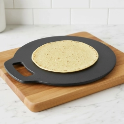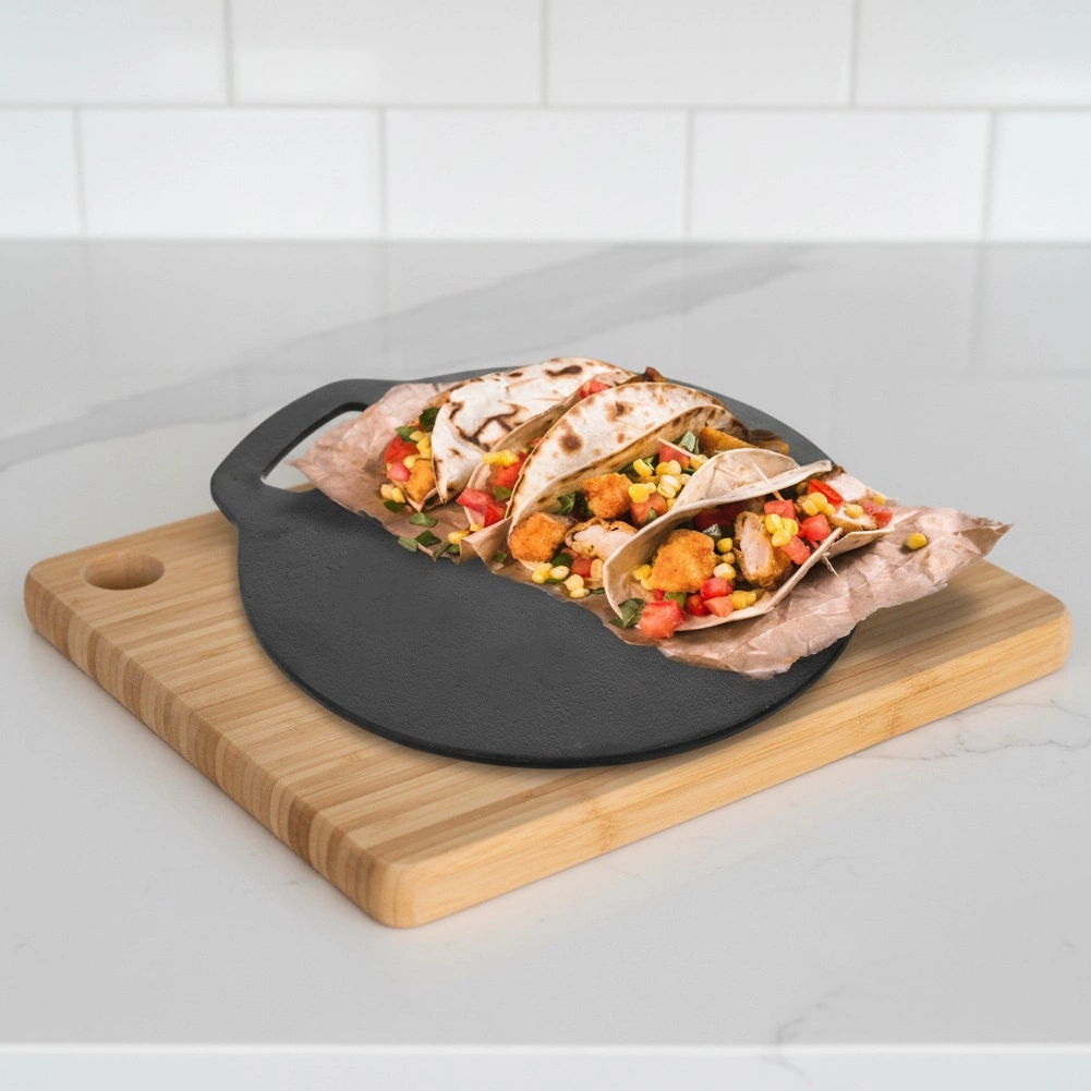 Fedezze fel a megbízható öntöttvas serpenyőt, amely mindent tud a ropogós tócsnitól a légiesen puha palacsintákon át egészen a házi tortilláig vagy pizzáig. Az egy darabból készült, robusztus kivitelnek köszönhetően a hő egyenletesen oszlik el, így az ételek hatékonyan, tökéletes eredménnyel készülnek.