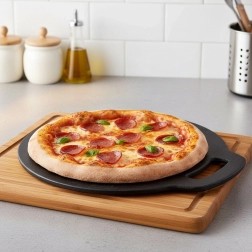 A serpenyő rendkívül sokoldalú: használható tűzhelyen, sütőben, grillen és nyílt láng felett is. Kiválóan szolgál tálaló tányérként vagy péklapként pizza sütéséhez. Megfelelő karbantartással (szárítás és enyhe beolajozás minden használat után) hosszú éveken át hű társ lesz.