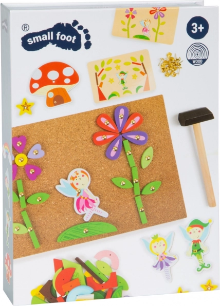 A gyerekek gyakorolják a kéz-szem koordinációt, a pontosságot és a türelmet, miközben az elemeket a parafa táblára illesztik és beütögetik. A tündérvilágok ösztönzik a fantáziát és a kitartást.