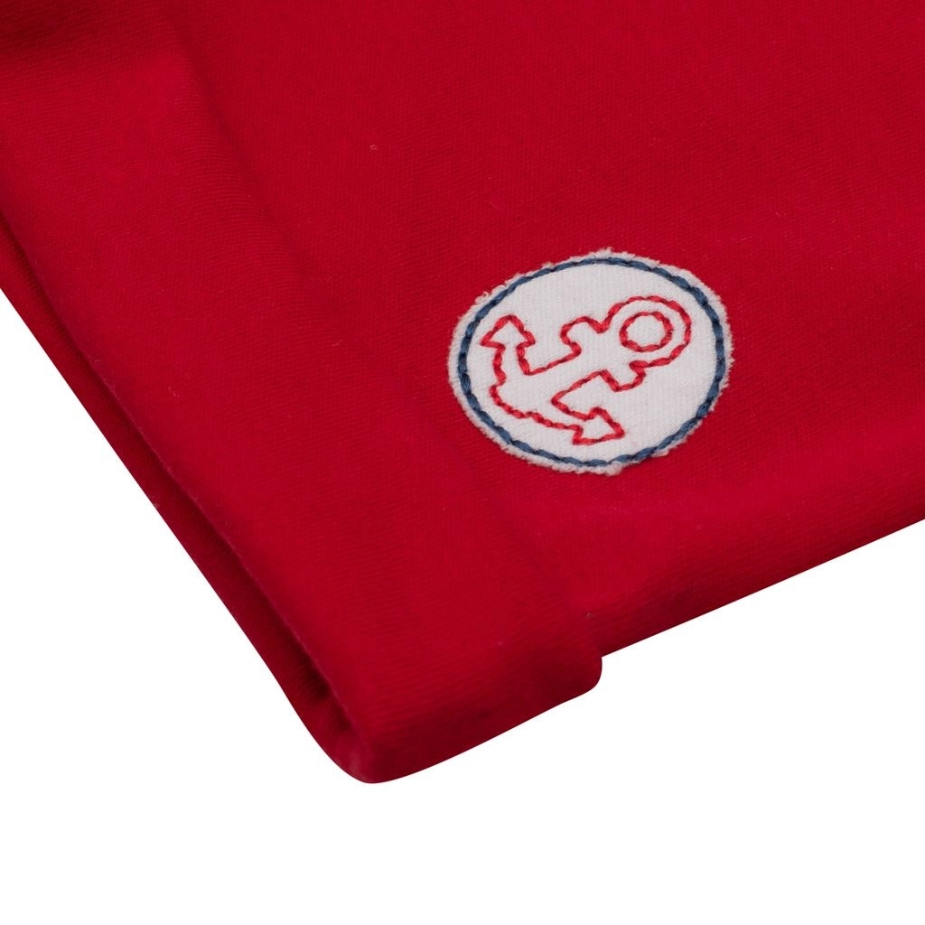 Könnyű és kellemes szettet keres a meleg napokra? A NEW BABY Marine matróz kollekció játékos megjelenést és maximális kényelmet kínál. A rövid ujjú pólót modern csíkok és szép hajó felvarrás díszíti, amely belülről anyaggal van alábélelve a karcolás megelőzése érdekében. Az egyszínű rövidnadrág visszafogott horgony motívummal könnyen kombinálható és remekül áll.