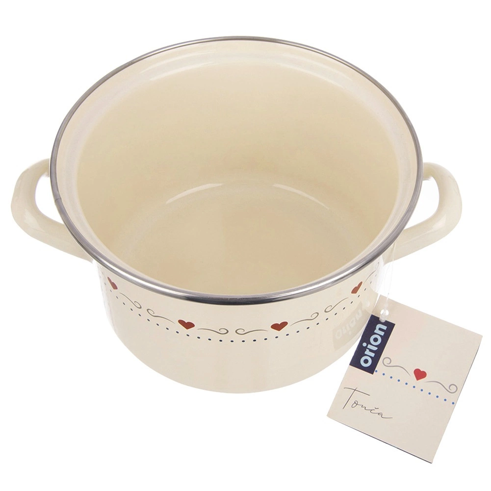 Fedezze fel a mindennapi főzés praktikus segítőjét. A retro stílusú TONCA zománcozott lábas ideális főzéshez és pároláshoz – levesekhez, mártásokhoz és főételekhez. A szívecskés díszítésű, szép krémszínű design feldobja a konyhát, a masszív fülek pedig biztonságos kezelést garantálnak.