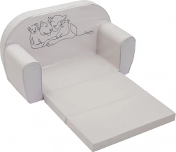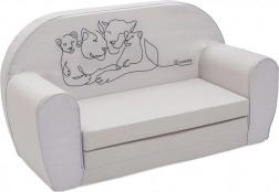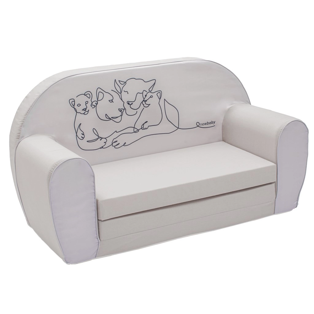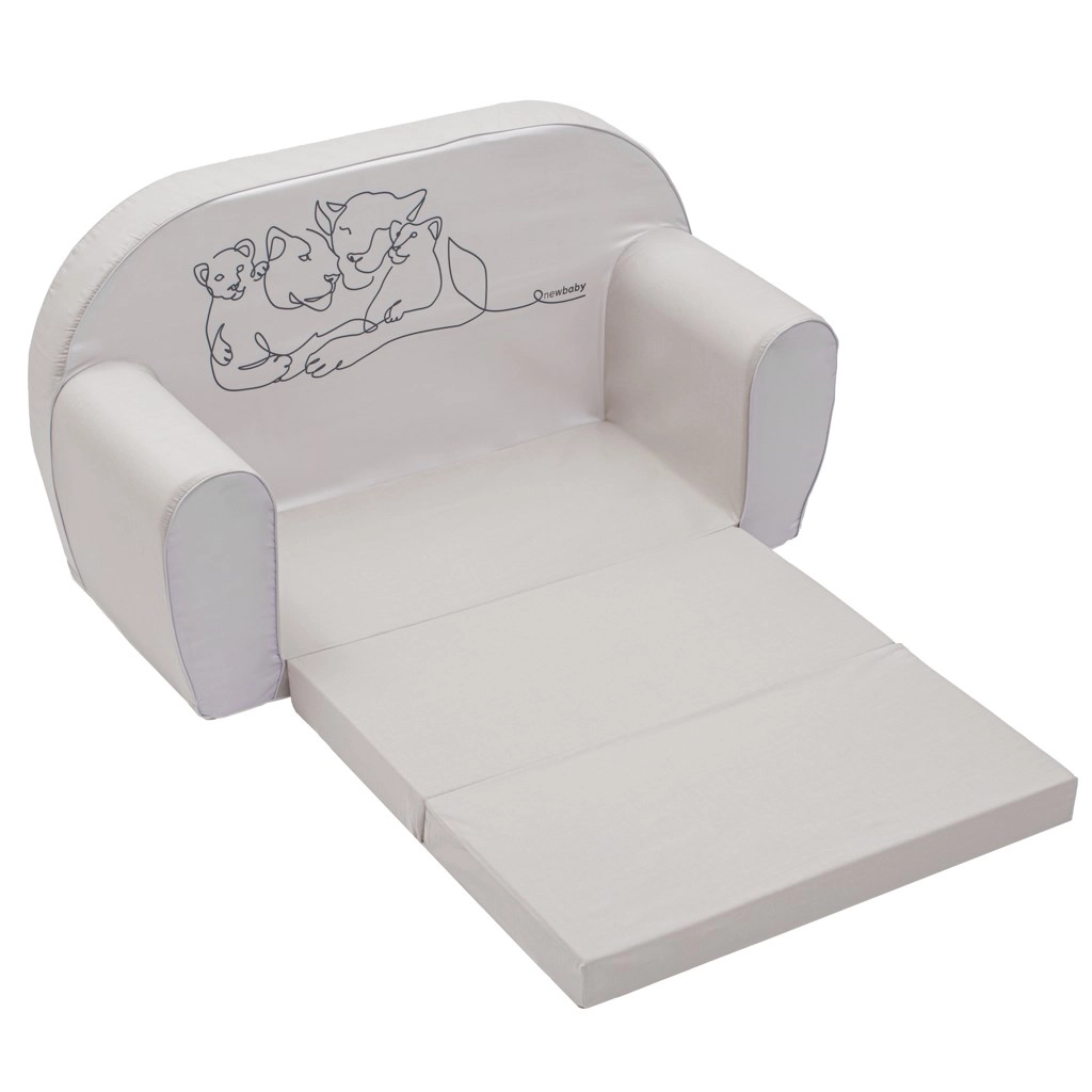 A stílusos New Baby gyerek kihúzható kanapé ideális minden gyerekszobába. Puha és könnyű poliuretán habból készül, levehető, cipzáras pamuthuzattal rendelkezik, és biztonságos, kényelmes ülőhelyet nyújt kemény elemek nélkül. A kellemes világosszürke dizájn dinoszaurusz motívummal remekül illik a gyerekszobai enteriőrbe, és pihenésre valamint játékra csábít.