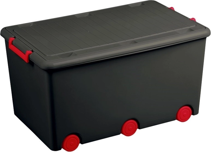 A praktikus, két patentos oldalsó zárás biztonságban tartja a tartalmat, a stapelhetőség pedig segít a rendelkezésre álló tér maximális kihasználásában. A 60 literes űrtartalom elegendő játékok, építőkészletek, plüssök, könyvek és iskolai felszerelések számára.