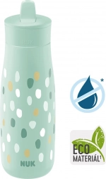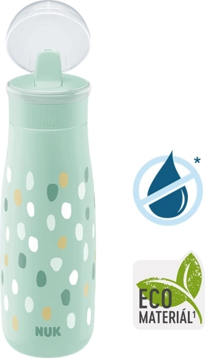A NUK Mini-Me Flip ideális társ a kis felfedezőknek. A 2 az 1-ben csutora révén a gyermek eldöntheti, hogy szívószállal vagy közvetlenül iszik. A csutora anyaga harapásálló, így jól bírja az első fogakat. A kulacs fenntarthatóságra és minőségre tervezve készült – a teste 82%-ban megújuló, fenntartható forrásból származó anyagokból készül, BPA-mentes.