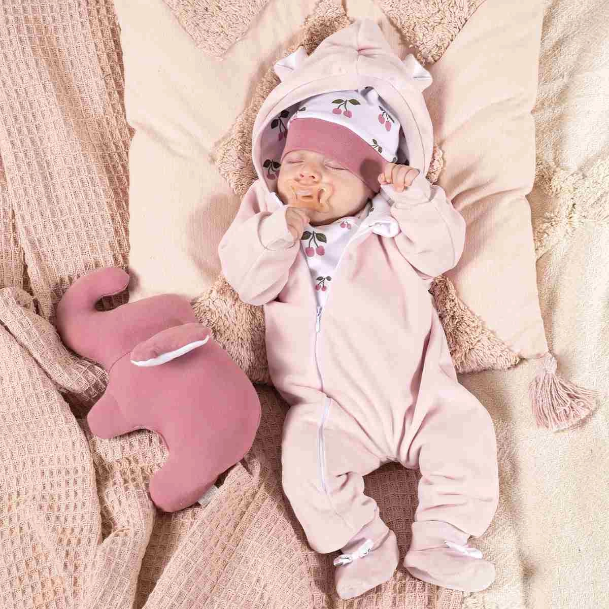 A teljes hosszúságú oldalsó cipzár jelentősen megkönnyíti az öltöztetést és a pelenkacserét, a fülecskés kapucni bájos megjelenést ad, a felhajtható ujjvégek pedig szépen megmutatják a meleg bélést. Az anyagok megfelelnek az OEKO-TEX Standard 100 követelményeinek, ami biztonságot nyújt az érzékeny bababőr számára.