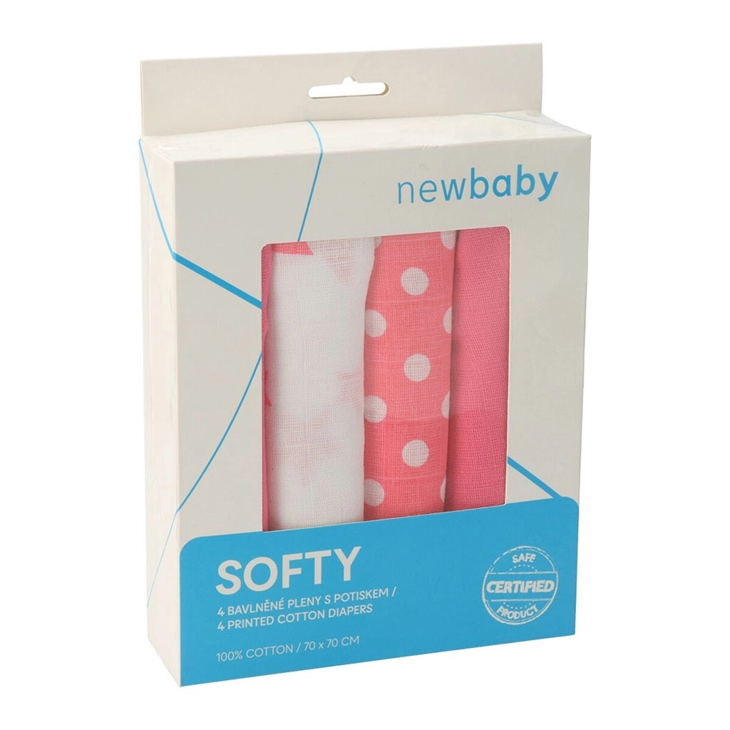 A sokoldalú, pamut New Baby Softy pelenkák kellemes tapintásúak, légáteresztők és kíméletesek az érzékeny bababőrhöz. A magasabb grammsúlynak és a tartós kivitelnek köszönhetően jól tartják a formájukat, és gyakori mosás mellett is sokáig bírják. Az időtálló minta finom, letisztult megjelenést kölcsönöz, amely jól illik egy kislány babakelengyéjéhez.