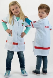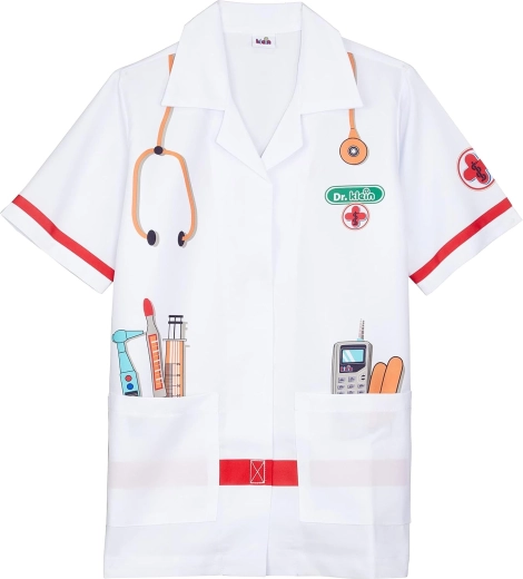 A KLEIN gyerek orvosi köpeny serkenti a fantáziát és fejleszti a szociális készségeket az orvosos szerepjáték során. Könnyű és kényelmes szabás gallérral, rövid ujjakkal és tépőzáras záródással, amely megkönnyíti a fel- és levételt. A színes eszköznyomatok hitelességet és vidámságot kölcsönöznek a játéknak.
