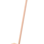Finoman csiszolt, természetes árnyalatú fa nyél, amely jól illeszkedik a gyerekek kezébe, biztonságos és kényelmes fogást biztosít seprés közben.