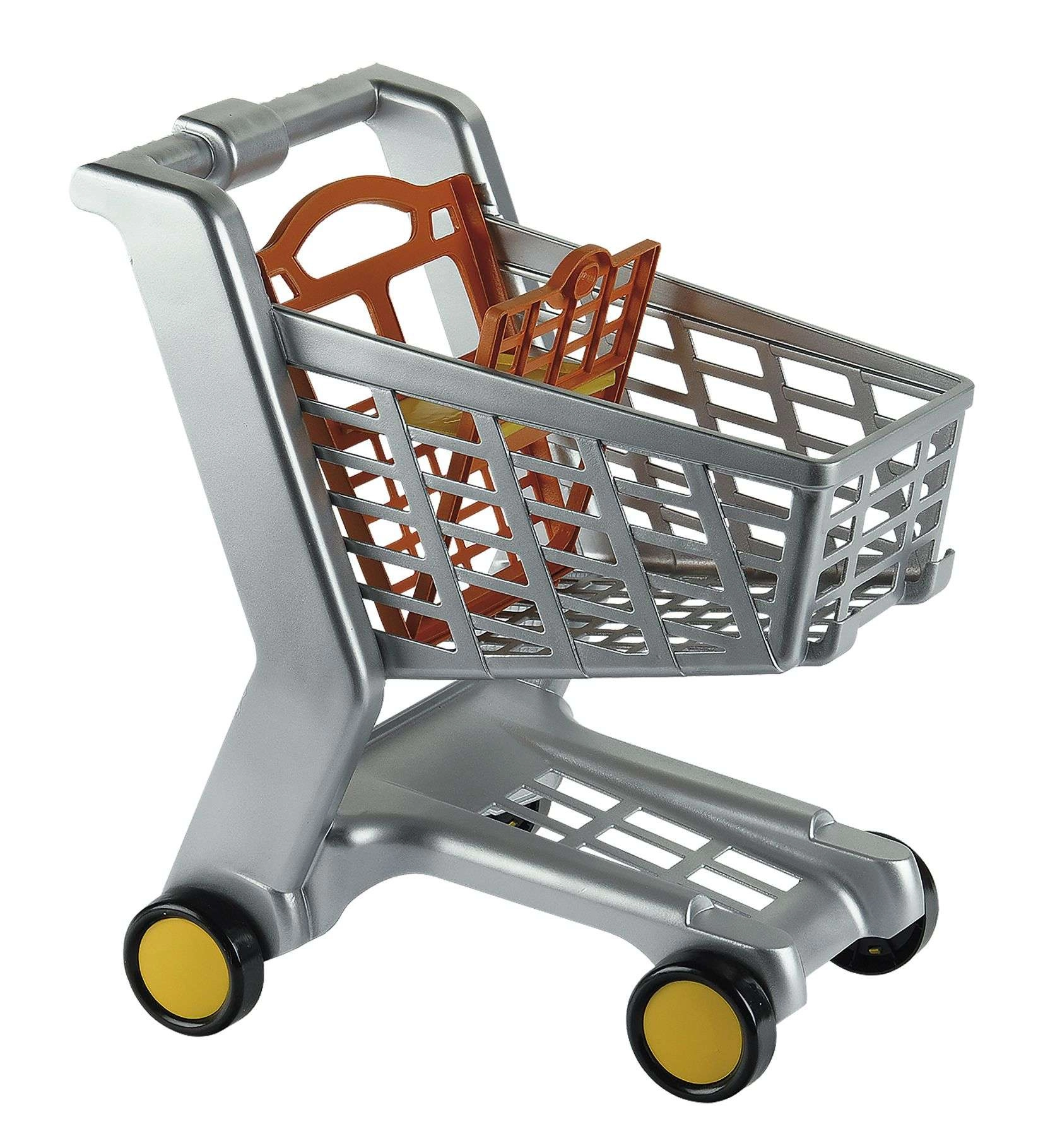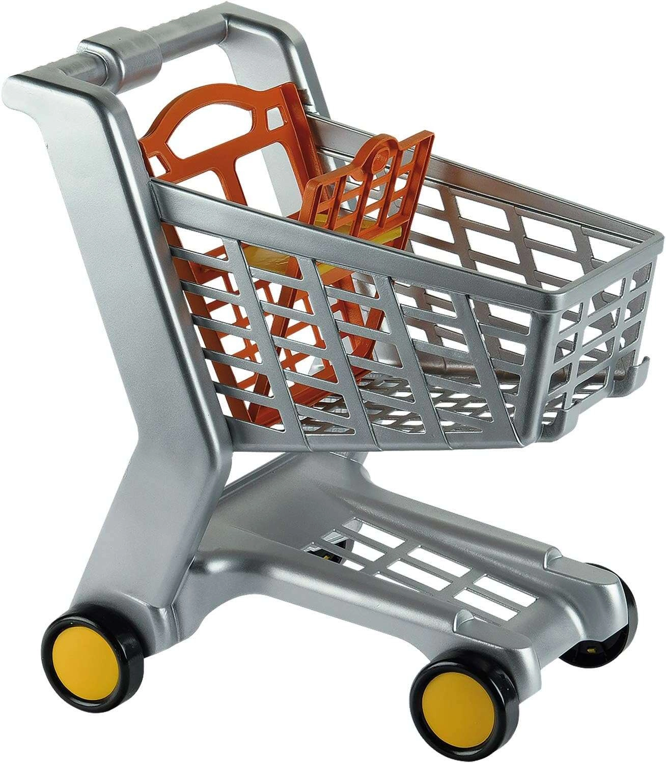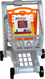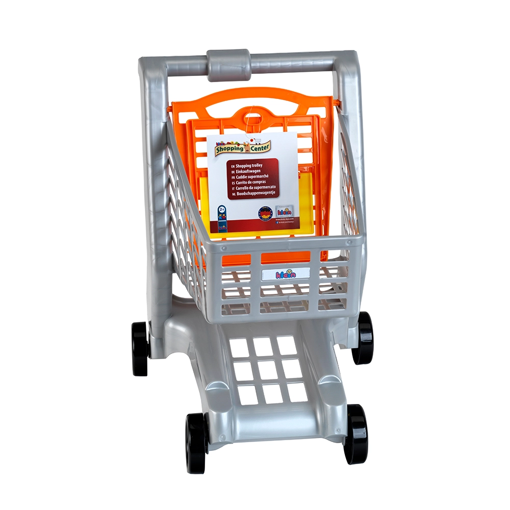 A nyitott kosár, a fogantyú és a négy kerék a szupermarketek valódi kocsiját idézi – a gyerekek autentikus vásárlási élményt kapnak.