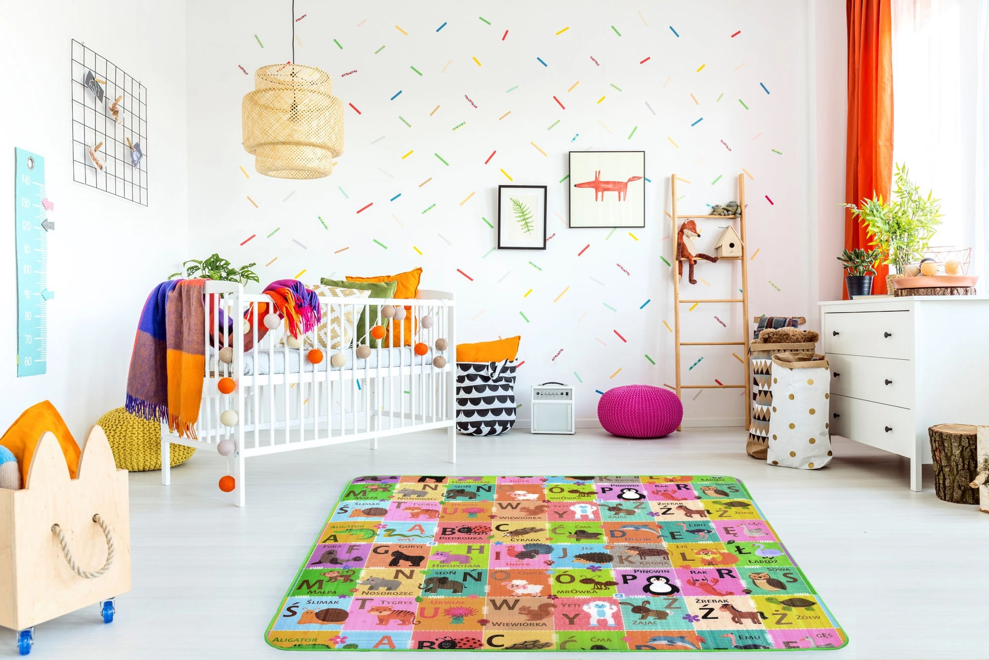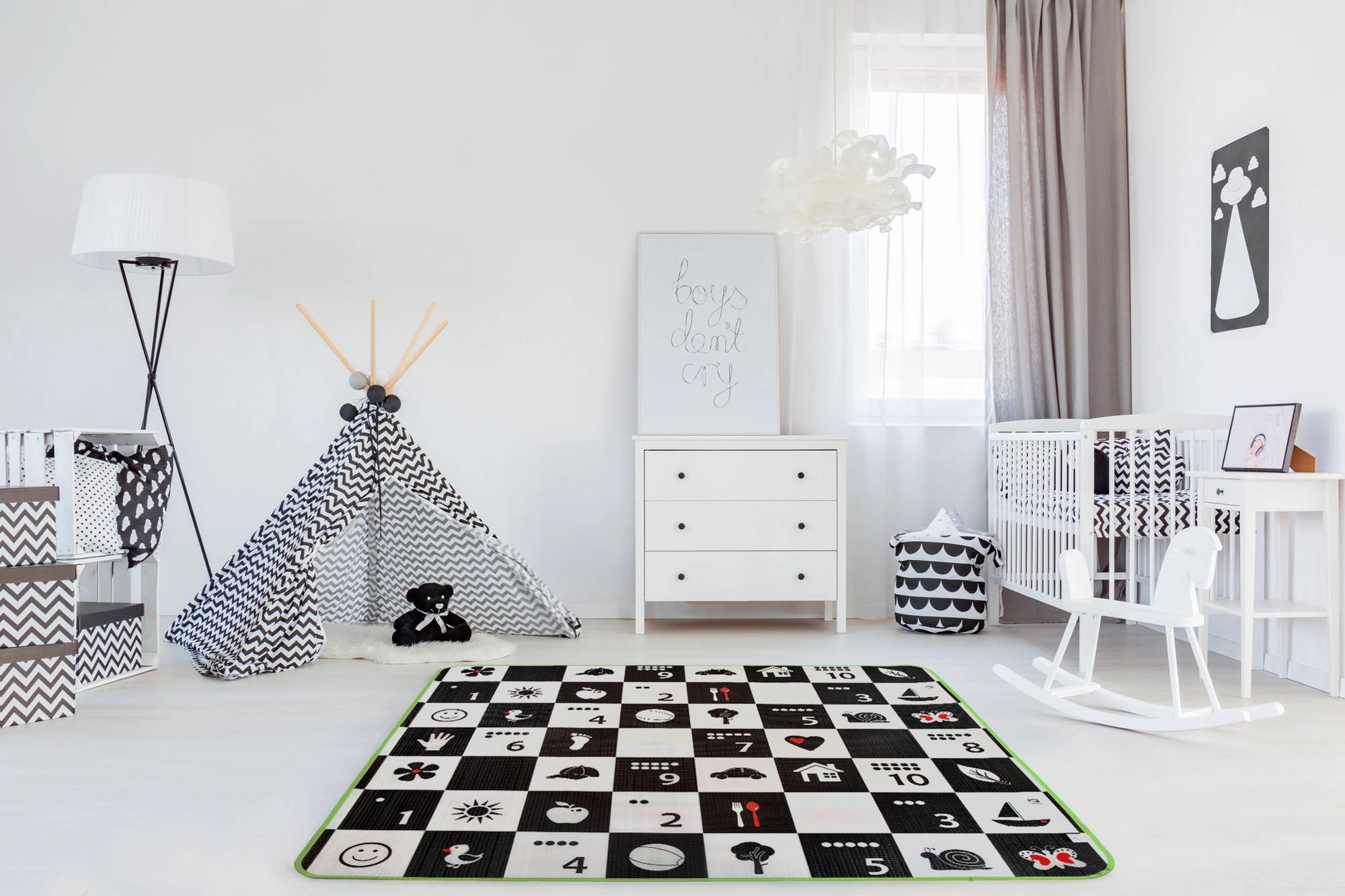 A HUMBI puha és biztonságos gyerek habszőnyege kétoldalas kialakítású: kontrasztos fekete–fehér sakktábla számokkal a babáknak és színes ábécé állatokkal az ovisoknak. Vízálló, könnyen tisztítható, ütéscsillapító, és a 180 × 150 × 1 cm méret bőséges helyet ad a játékhoz otthon és a szabadban. Nem tartalmaz ftalátokat, PVC-t, BPA-t és formamidot, és megfelel az európai biztonsági szabványoknak.